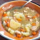 A classic chicken stew contains chicken, onions, carrots, and potatoes, thickened with flour and seasoned with herbs like thyme and rosemary, simmered in a chicken broth or stock, and often includes celery and garlic. Common additions for flavor or texture include butter, mushrooms, peas, and bay leaves.