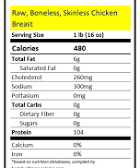 Two pounds (32 ounces) of raw, skinless chicken breast contain approximately 1,089 calories. This figure is based on the meat-only nutrition of broilers or fryers. A smaller serving, such as one pound, would have about 545 calories.