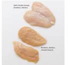 A split chicken breast is the larger half of a whole chicken breast, remaining bone-in and skin-on, while a standard chicken breast is typically the boneless, skinless, and butterflied cut, also known as a chicken cutlet. Split breasts cook more slowly but remain juicier, are often more affordable, and can result in a crispier skin. Standard chicken breasts cook faster, making them ideal for quick meals, though they require more careful cooking to avoid drying out.