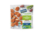The chicken strips use organic raisin juice as a binder to keep the moisture in, resulting in tender, juicy bites. They have a more uniform, nugget-like appearance and turn a nice golden brown when cooked.