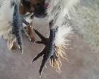 Sometimes the feathers on their feet grow too long and need a trim. Using clean scissors, carefully trim back excessive feathering, being careful not to cut the skin or cause bleeding.