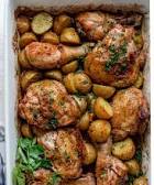 21. Sheet Pan Greek Garlic Butter Chicken and Potatoes