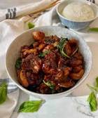 The dish is characterized by its sticky, caramelized sauce that clings to each piece of chicken and its wonderful aromatic profile from basil, ginger, and garlic. It’s comfort food at its finest – deeply savory with hints of sweetness and incredible depth of flavor.