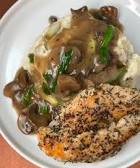 The contrast between the smooth polenta and the chicken Marsala creates a truly satisfying meal.