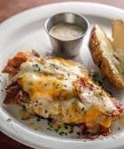 Grilled chicken breast topped with sautéed mushrooms, crisp bacon, melted Monterey Jack and Cheddar and honey mustard sauce. Served with two freshly made sides.